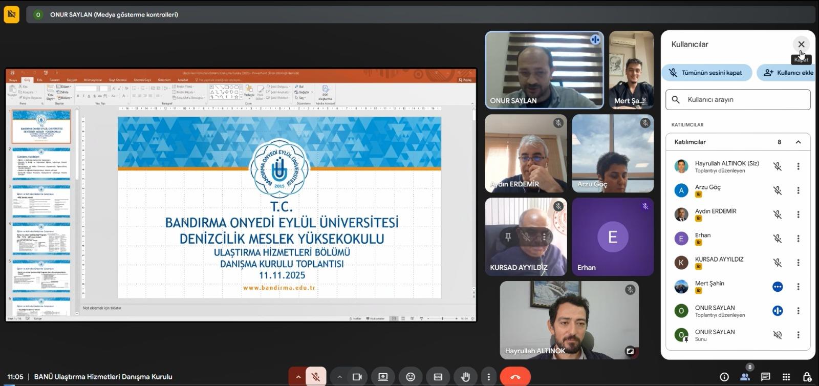 Ulaştırma Hizmetleri Bölümü Danışma Kurulu, 11 Kasım 2025 tarihinde sektör temsilcileri, akademisyenler ve mezunların katılımıyla gerçekleştirildi. Toplantıda bölümün eğitim-öğretim süreçleri, müfredat güncellemeleri, sektörle iş birliği, yabancı dil eğitimi ve kariyer planlama faaliyetleri kapsamlı şekilde değerlendirildi.