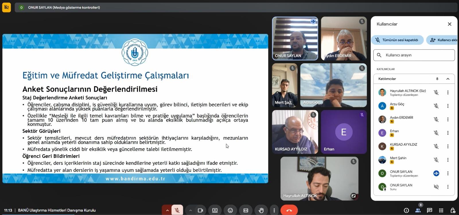 Toplantıda paylaşılan anket sonuçlarına göre program öğrenme çıktılarının sektör beklentileriyle yüksek uyum gösterdiği belirtildi. Öğrenci memnuniyetinde akademik kadronun güçlü yön olarak öne çıktığı, fiziki altyapıya yönelik iyileştirmelerin ise ihtiyaç olarak belirlendiği ifade edildi.