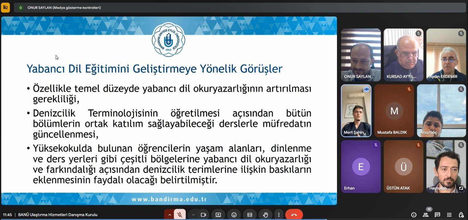 Toplantıda yabancı dil okuryazarlığının artırılması amacıyla denizcilik terminolojisini içeren derslerin ve kampüs içi farkındalık çalışmalarının önemine dikkat çekildi. Denizcilik kariyer farkındalığının lise seviyesine kadar yayılması gerektiği vurgulandı.
