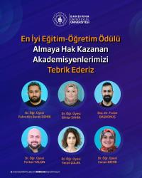 Üniversitemizin eğitim vizyonuna değer katan akademisyenlerimizi tebrik eder, başarılarının devamını dileriz.