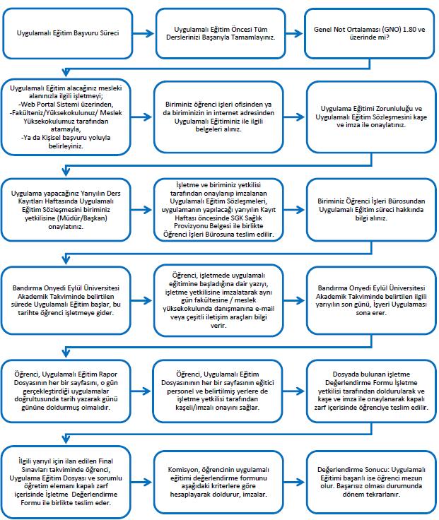 - İşyeri Uygulaması Bandırma Onyedi Eylül Üniversitesi Akademik Takviminde belirtilen tarihte başlar.