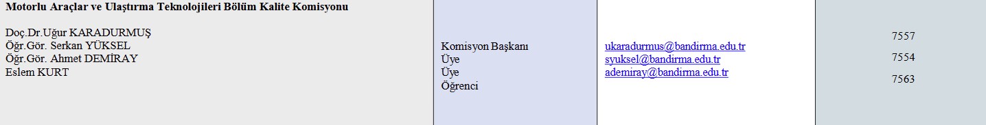 2025-2026 eğitim-öğretim yılı bölüm kalite komisyonu için